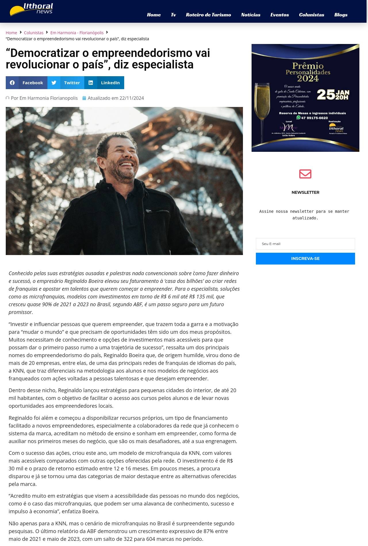 "Democratizar o empreendedorismo vai revolucionar o país", diz especialista - Lithoral News