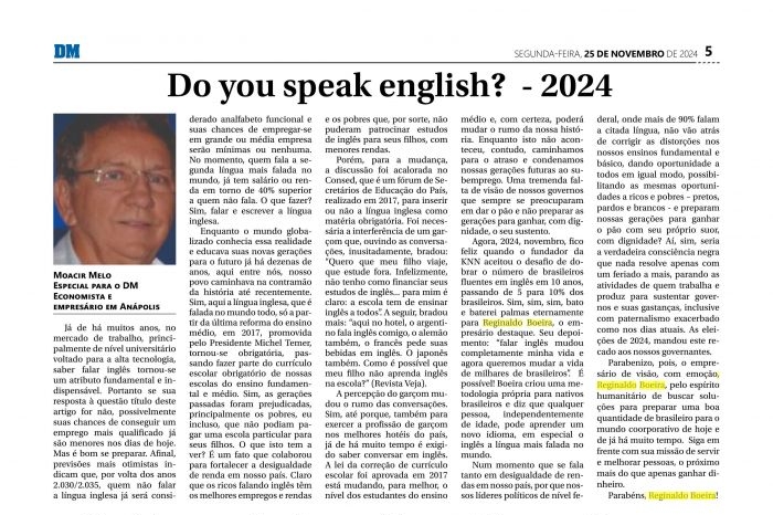 eternamentepara Reginaldo Boeira, o empresário destaque. Seu depoimento: "falar inglês mudou