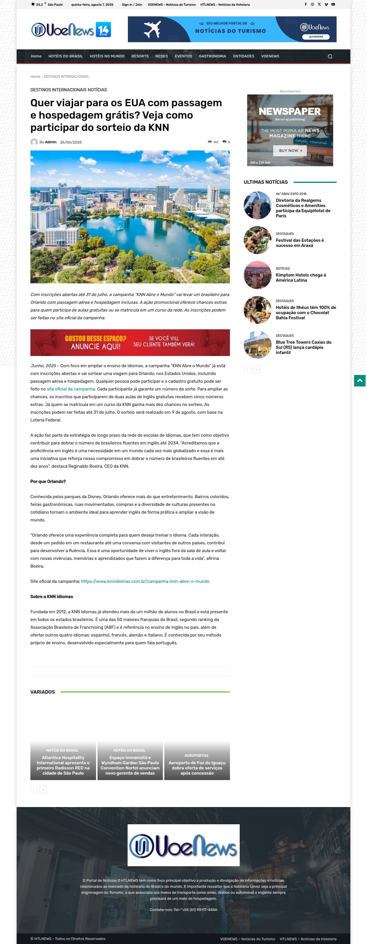 Quer viajar para os EUA com passagem e hospedagem grátis? Veja como participar do sorteio da KNN VOENEWS - Notícias do Turismo